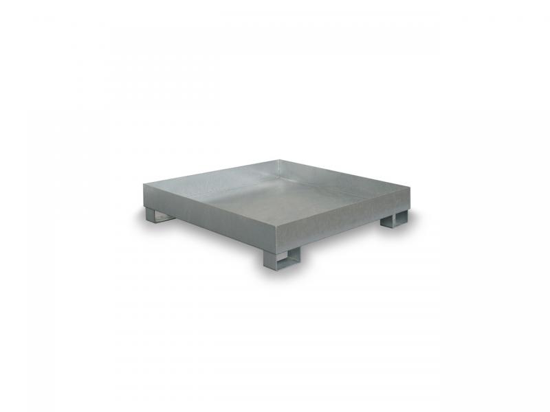 - Konstruktion aus 3 mm Stahlblech (S235JR), flüssigkeitsdicht verschweißt und verzinkt, mit 100 mm Unterfahrhöhe